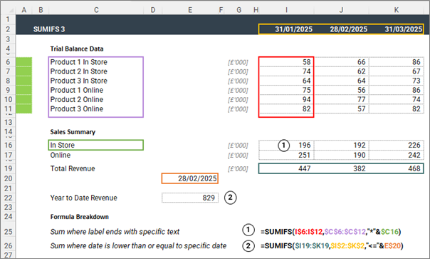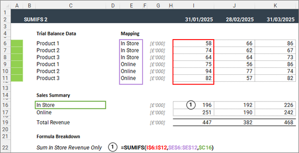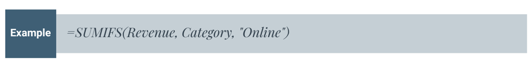 Think of it as instructing Excel: “Total only the revenue for rows labelled ‘Online’ – ignore everything else.”